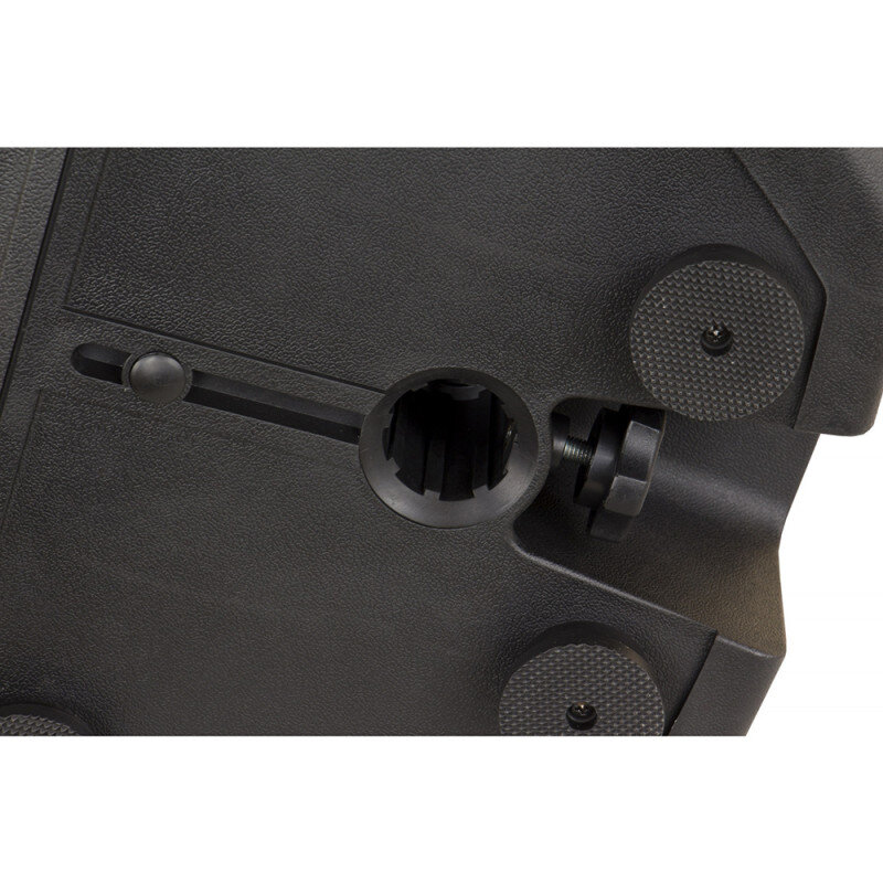 The robust yet easily transportable polypropylene cabinet is designed to adapt to any type of installation: from fixed installation with a 35 mm stand or M8 eyebolts for rigging, to use as a stage monitor thanks to the integrated tilted stands. Non-slip rubber feet ensure stability even when placed vertically.