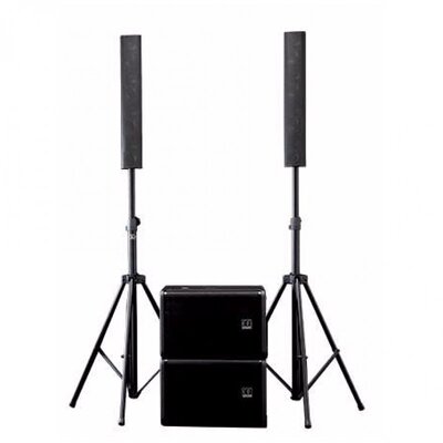 1020 W stereo sound system, consisting of 2 iLINE83 column speakers (H10756), 2 iLINEsub12 A active subwoofers (H10761), 1 USB > RJ45 converter for the DSP of the iLINEsub12A (H10762), 2 CAB-200 (H8245) and 2 CSP215 / 6 (H9841).