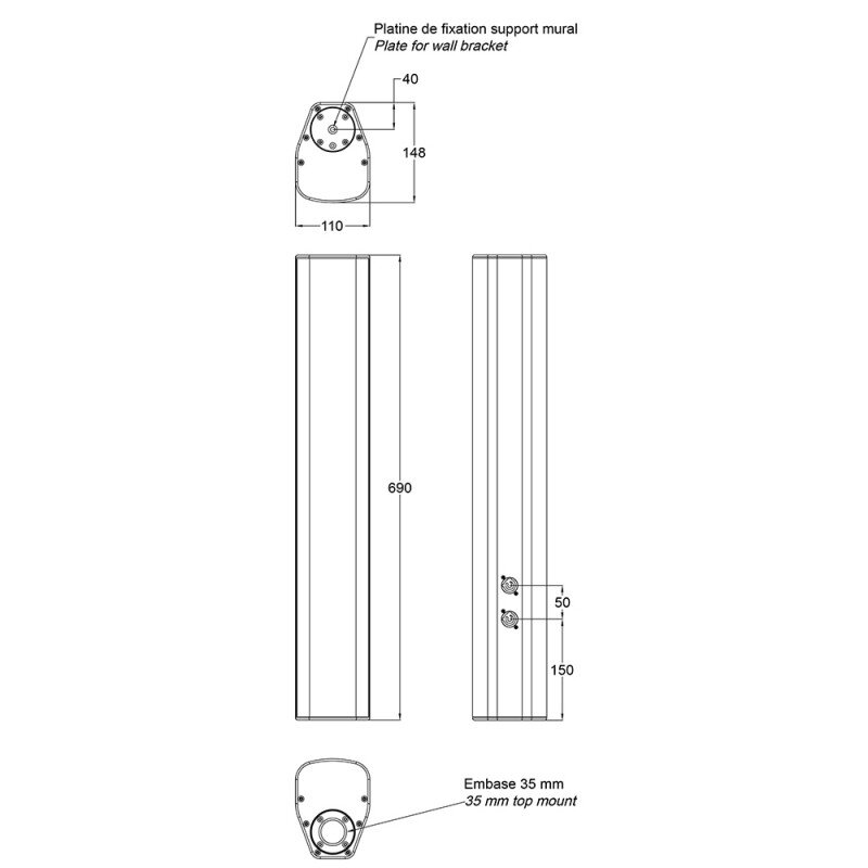 | Mounting systems | wall mout bracket plate: iLINE83sup mounting socket for speaker stand |