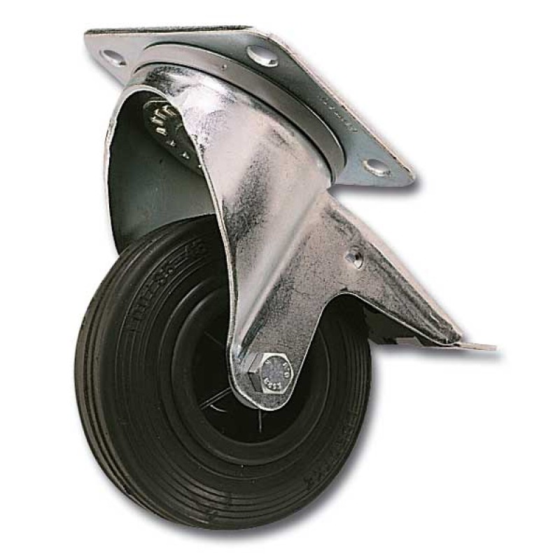 Roulette noire pivotante, Ø 100 mm, avec frein.
