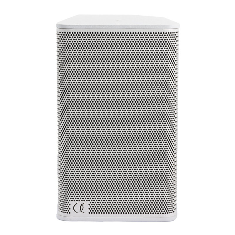 L'enceinte est fabriquée en contreplaqué recouvert d'une peinture polyurée blanche. Elle comprend une grille de protection en métal et est compatible avec une large gamme de systèmes de montage et de supports muraux en option.