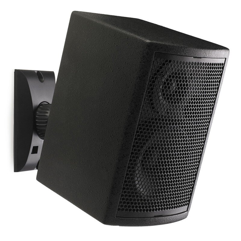 Compact 40 W, 8-ohm satellite loudspeakers for indoor use with a swivel wall mount and integrated connector.