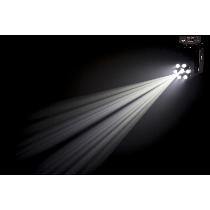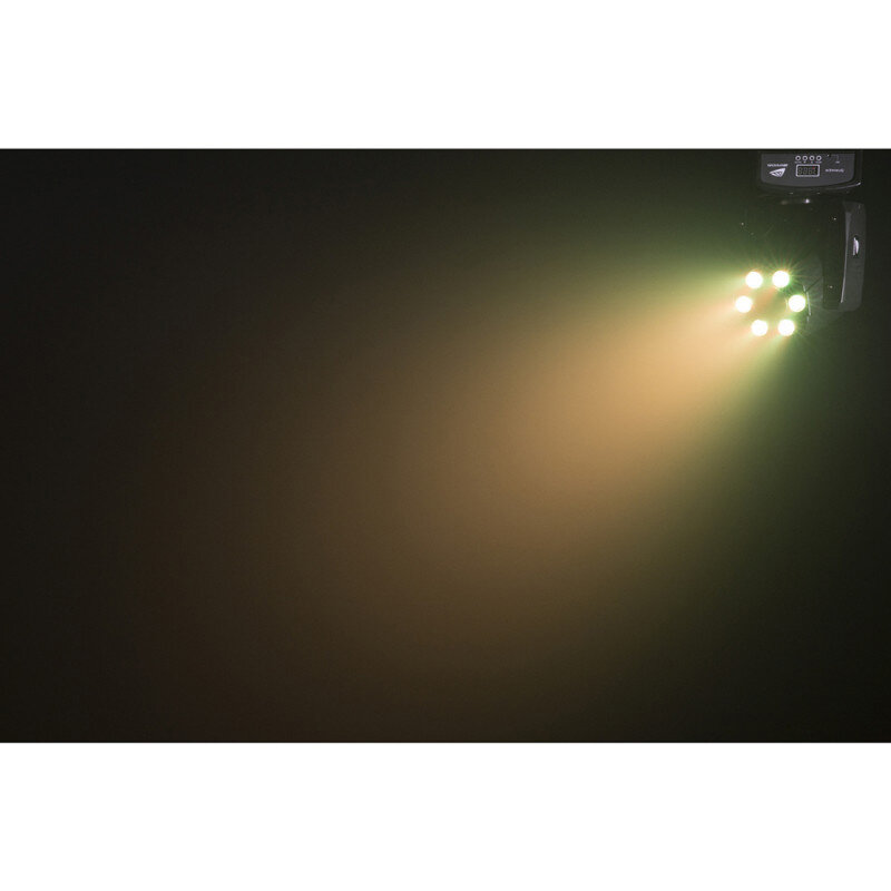 Testa mobile LED compatta ma potente e duttile con funzionalità Wash e Spot (raggio di 10°).