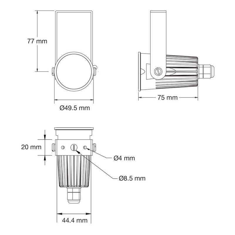 3 x 3 W tricolor LEDs waterproof projector supplied with a holding bracket compatible with MR16 fittings.