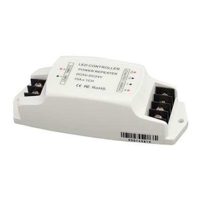 Single-channel signal amplifier, 12 - 24 VDC, up to 240 W, 10 A max. Without soldering installation.