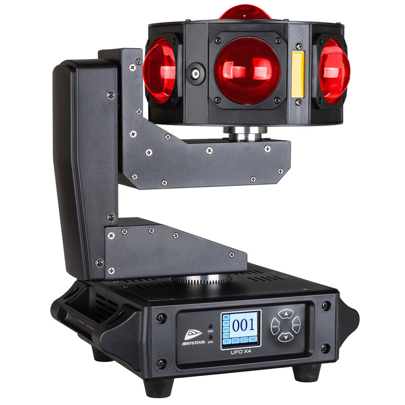 UFO X4 è un effetto luce compatto e versatile che racchiude quattro sorgenti luminose in un unico dispositivo: laser RGB, LED stroboscopici arancioni, LED RGBW ad alta potenza e LED RGB con effetti d'inseguimento.