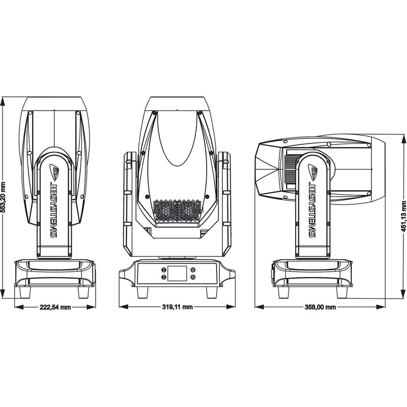 La sorgente LED bianca da 300 W (7800 K) garantisce un’emissione luminosa brillante e uniforme, mentre lo zoom motorizzato da 4,5° a 39,4° permette di passare da fasci stretti e incisivi a proiezioni più ampie. La doppia ruota Gobo, con Gobo fissi e rotanti, offre una ricca varietà di texture ed effetti, ulteriormente ampliati dal prisma rotante a 3 facce e dal filtro Frost motorizzato. Il controllo può avvenire via DMX cablato o tramite wireless DMX compatibile WDMX G4, con modalità stand-alone intelligenti e sincronizzazione Master/Slave. Il display LCD a colori semplifica la configurazione, mentre le funzioni di limitazione dell’area di movimento lo rendono ideale anche per installazioni permanenti in spazi complessi.