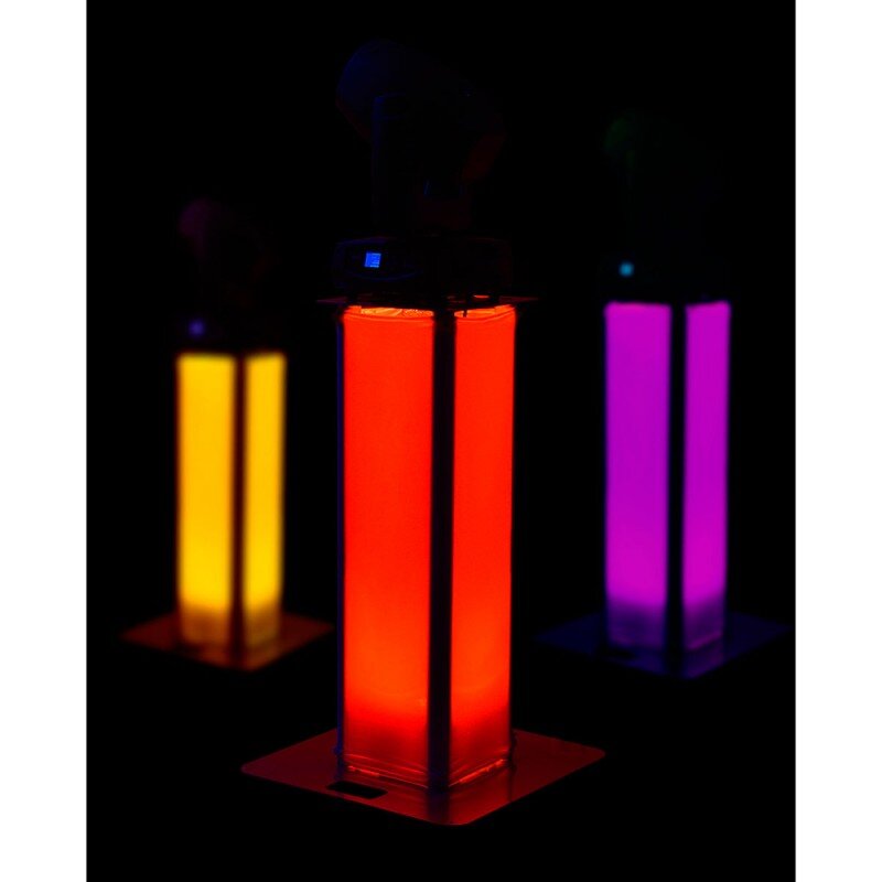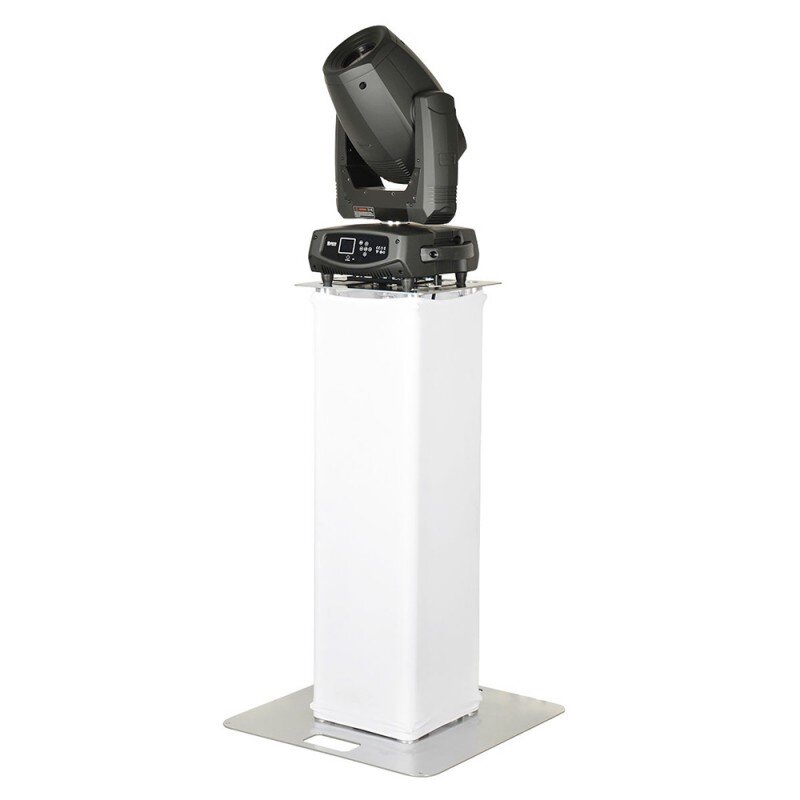 The totems are supplied with a 50 mm aluminum tube and Lycra fabric. Space for a projector to be inserted inside the totem for shadow-free illumination.